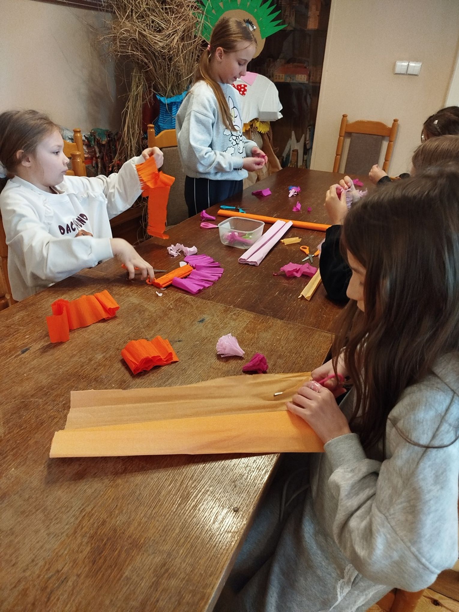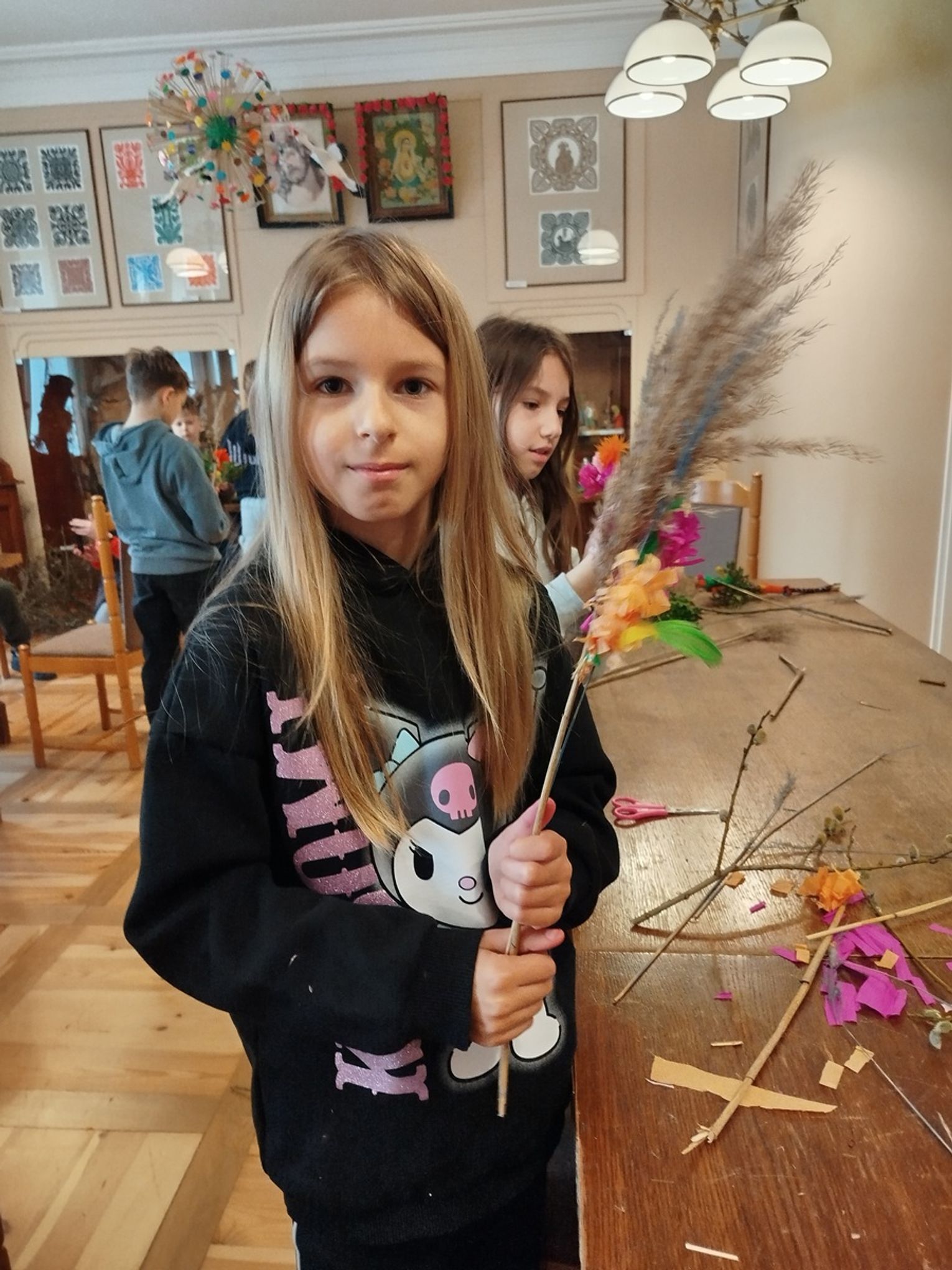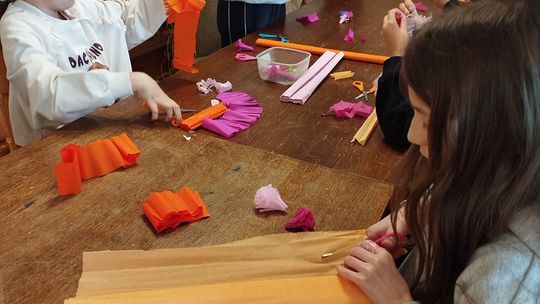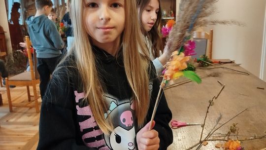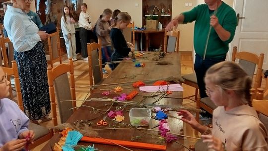 Jednym z punktów programu był „Warsztat palmy wielkanocnej”, który wprowadził uczestników w świat dawnych zwyczajów ludowych związanych z Niedzielą Palmową. Uczniowie dowiedzieli się, jakie znaczenie miała palma w tradycji oraz jak wyglądały jej historyczne formy. W części praktycznej, prowadzonej przez pracownika muzeum, dzieci krok po kroku tworzyły własne palemki z gałązek wierzby, bukszpanu, kolorowych kwiatów i bibuły.