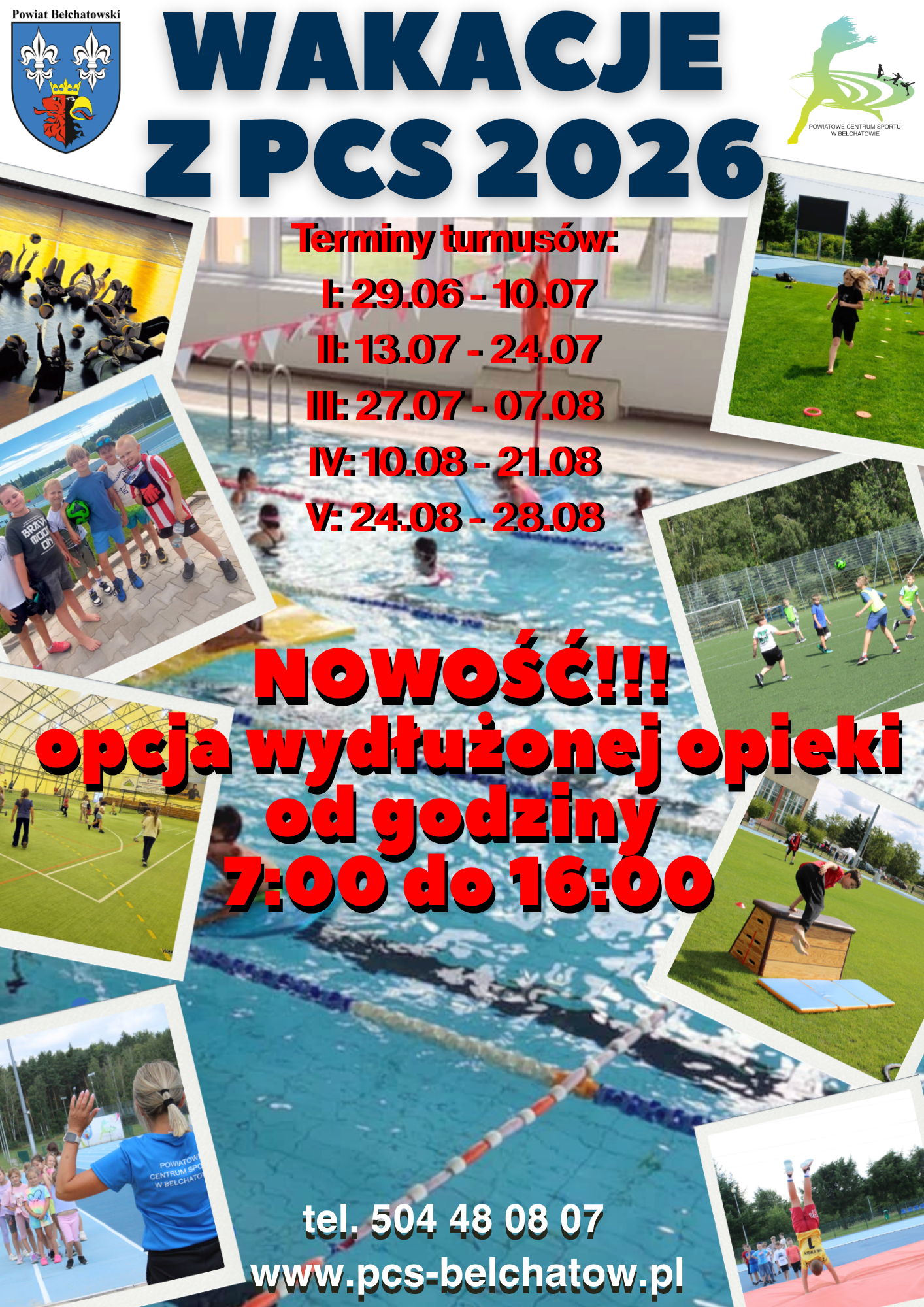 Już trzynasty sezon oferujemy ciekawe i aktywne wakacyjne zajęcia dla dzieci w wieku od 7 do 13 lat – mówi Mirosław Mielus, dyrektor PCS. – „Wakacje z PCS" są jednymi z największych zorganizowanych letnich zajęć stacjonarnych w naszym powiecie, każdego roku uczestniczy w nich około pół tysiąca dzieci. Gwarantujemy instruktorów, rozmaite zajęcia sportowe z wykorzystaniem wszystkich naszych obiektów i potencjału sportowego (basen, sala gimnastyczna, boiska, hala namiotowa, tereny zielone, gry, zabawy, konkursy), pięć turnusów, dwie opcje pobytu (4 lub 6 godzin (opcja z wyżywieniem), od poniedziałku do piątku) i co jest nowością- możliwość wydłużenia opieki nad dziećmi od godziny 7:00 do 16:00.